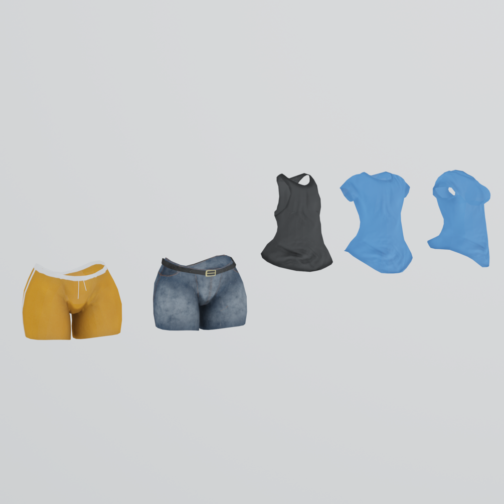 FBX and Textures for Shirt, Tanktop, Shorts, and Denim Shorts